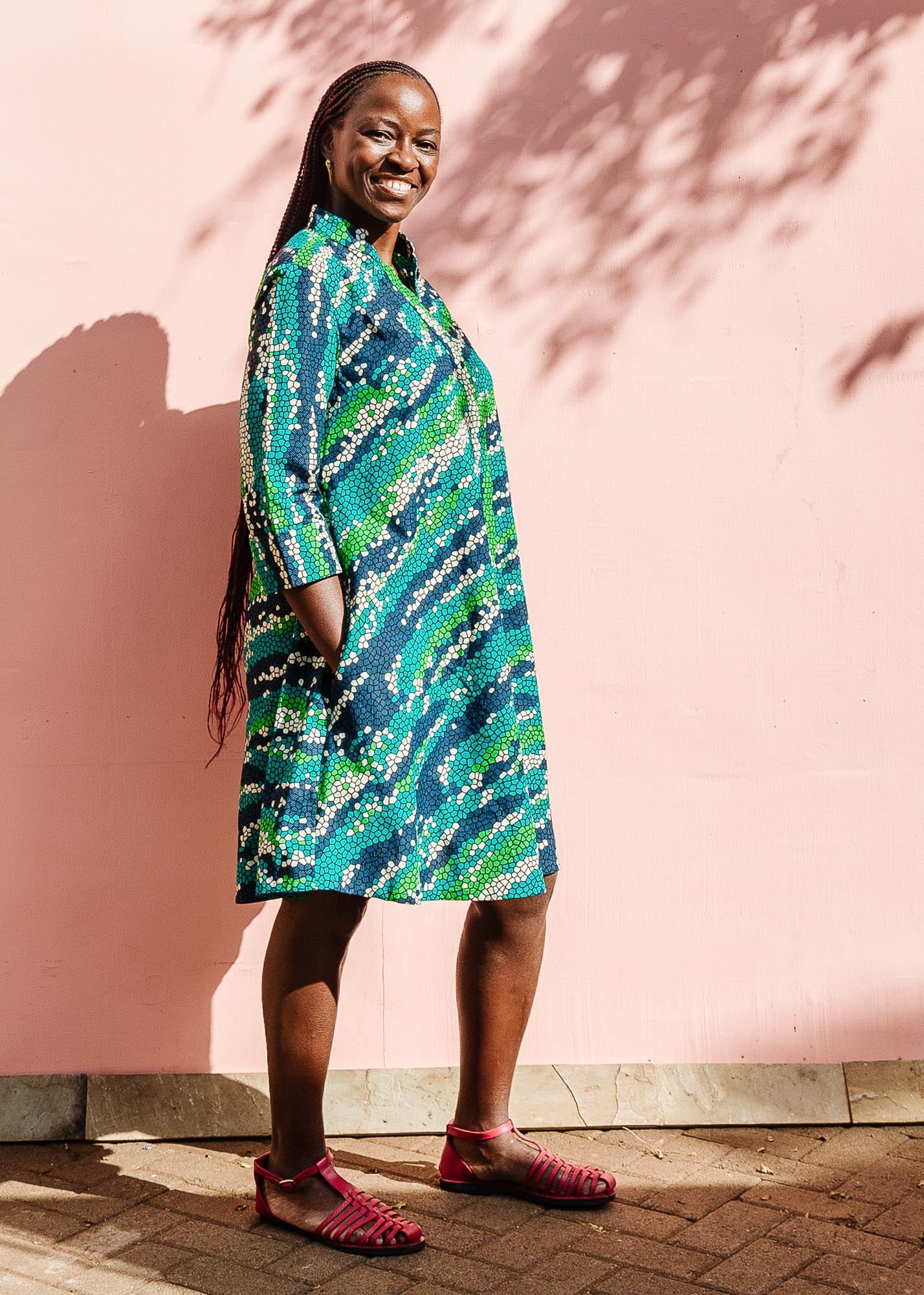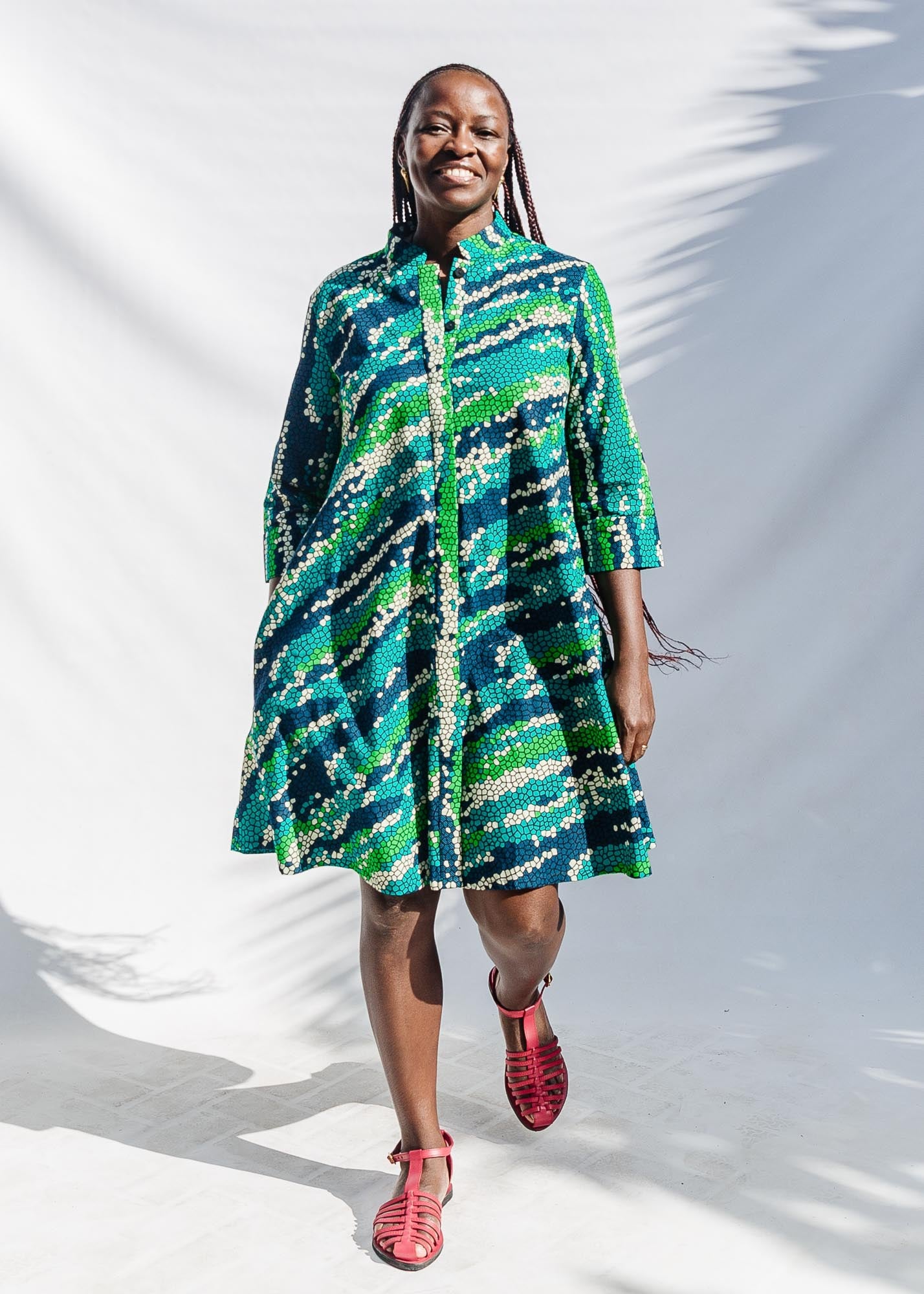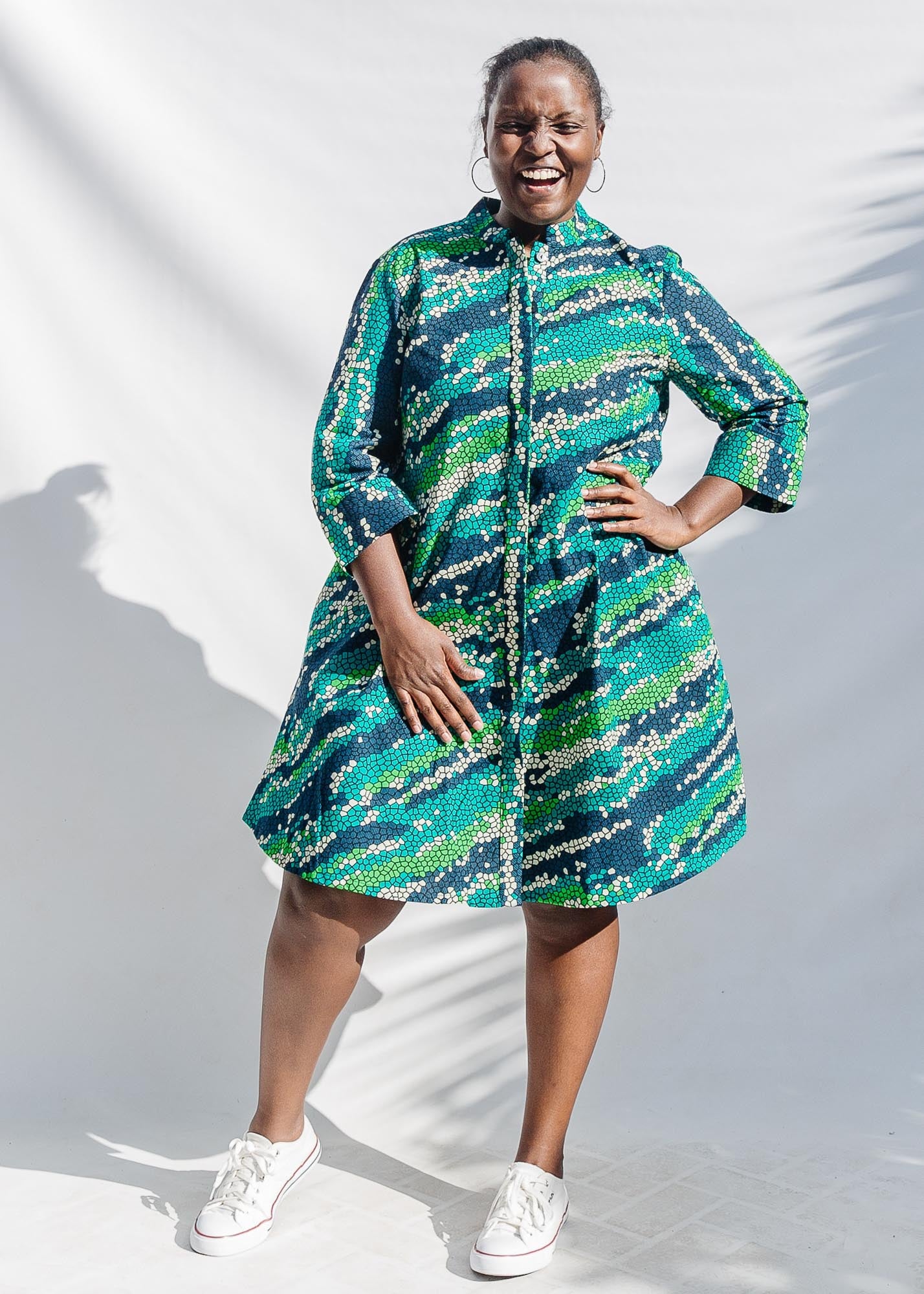 We work with an incredible network of fabric vendors in Dar es Salaam and Nairobi to source textiles. Over the years and many hundreds of prints, we've learned a lot about how to select fabrics. We truly have these women to thank for sharing their knowledge and trust, and in doing so, creating such a mutually supportive experience. Learn more about our process and our vendors here!