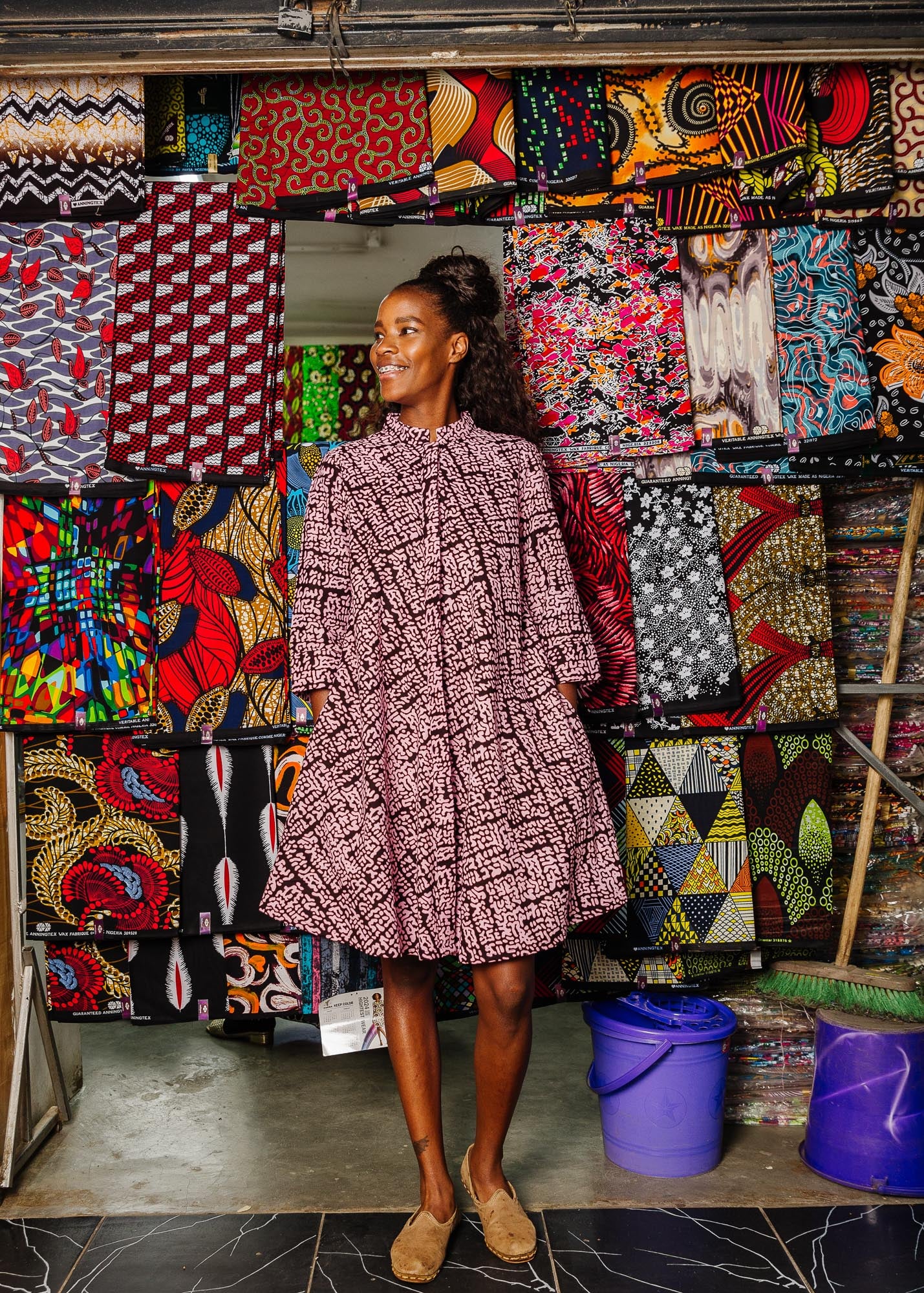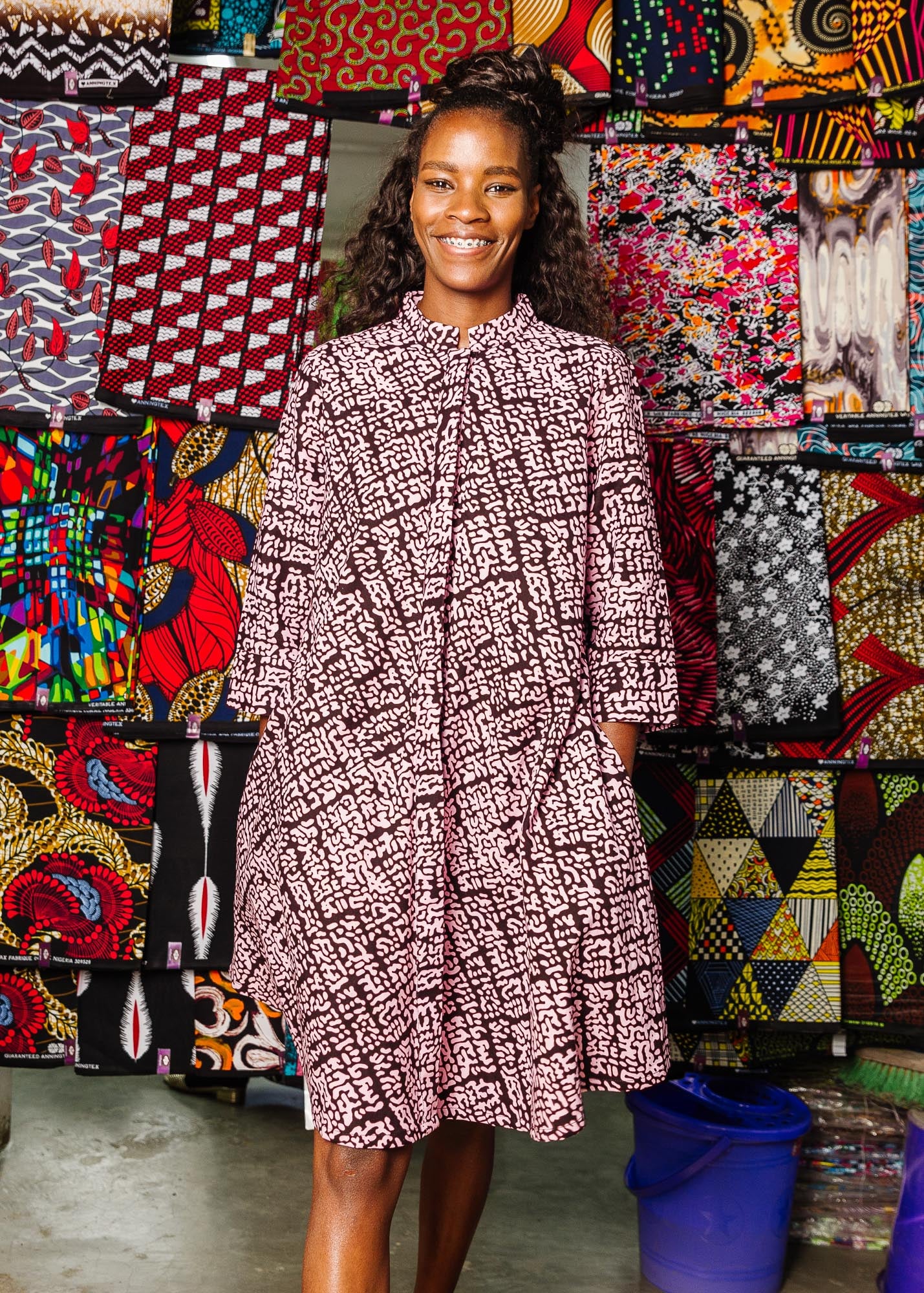 We work with an incredible network of fabric vendors in Dar es Salaam and Nairobi to source textiles. Over the years and many hundreds of prints, we've learned a lot about how to select fabrics. We truly have these women to thank for sharing their knowledge and trust, and in doing so, creating such a mutually supportive experience. Learn more about our process and our vendors here!