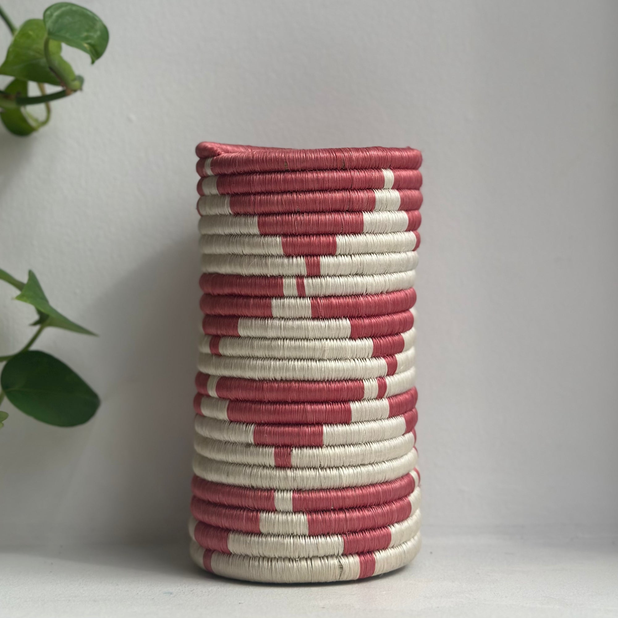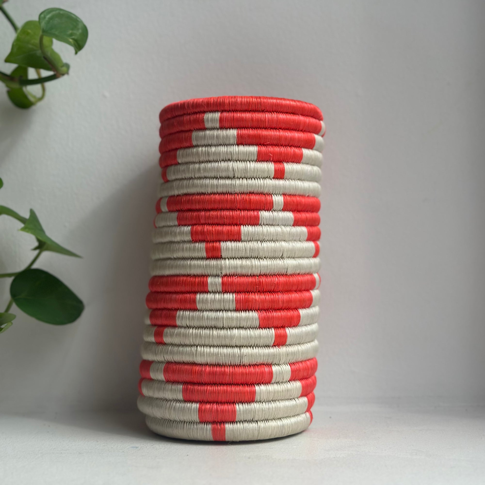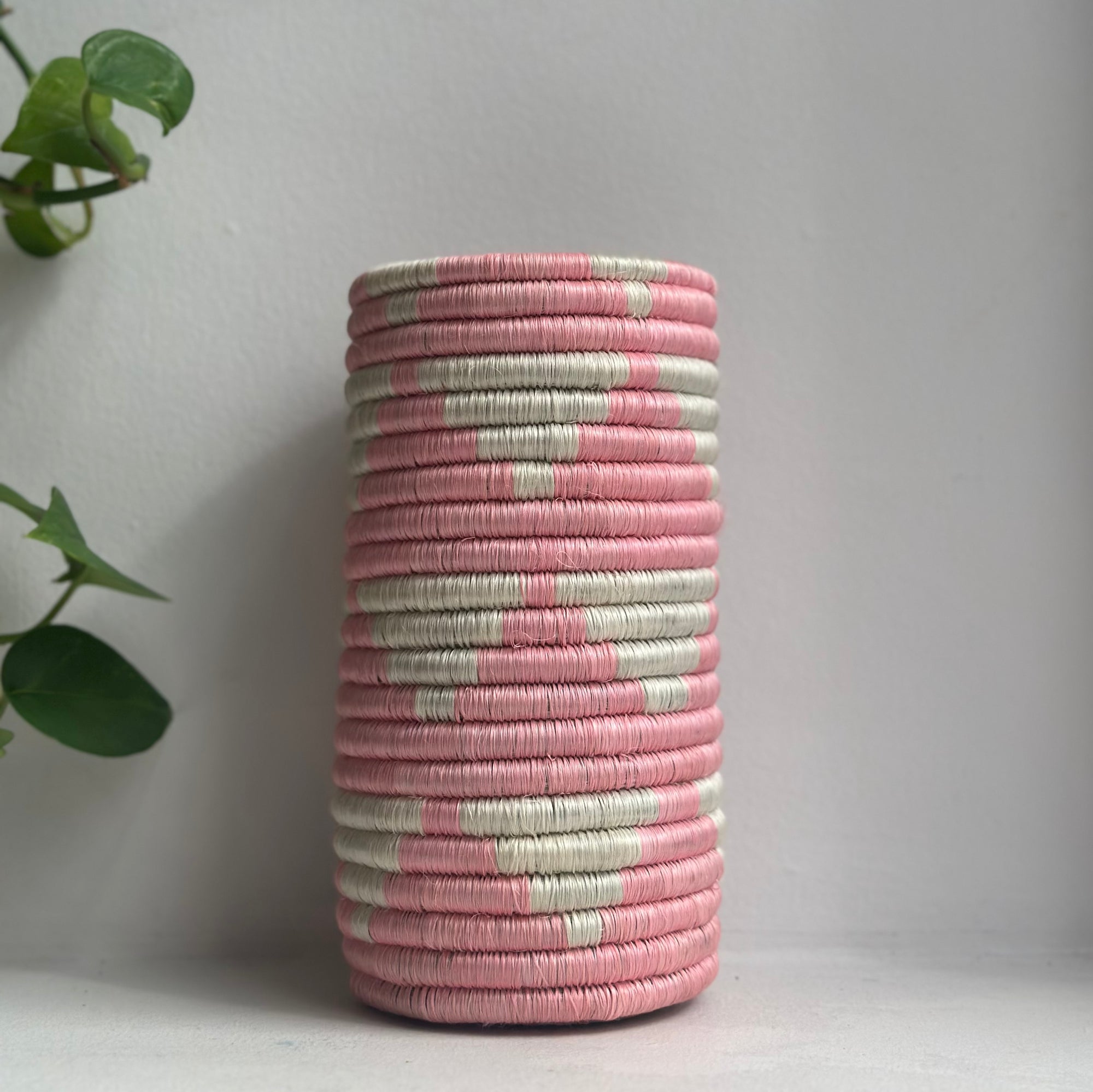 Beautiful woven vases made from sisal and grass! Adds a functional pop of color in your kitchen, or hang on your wall as an accent piece for any room!