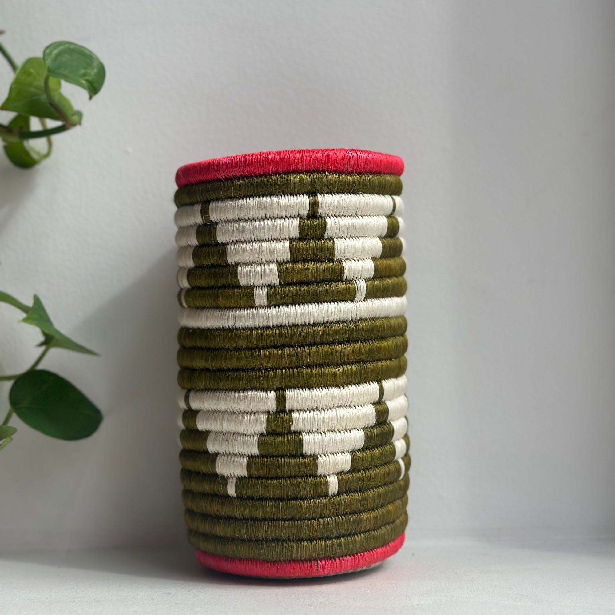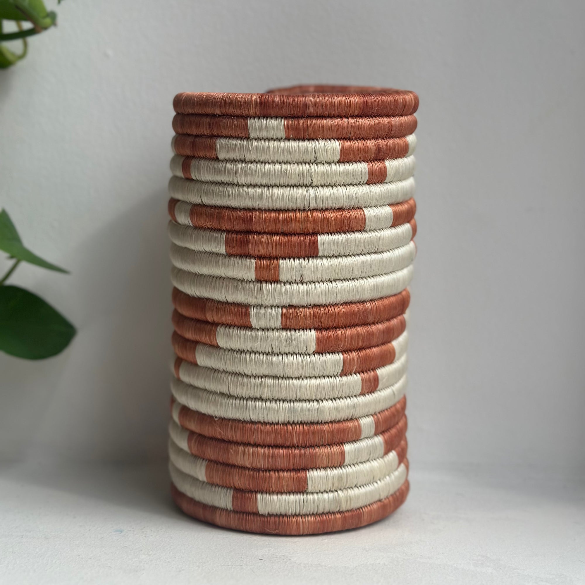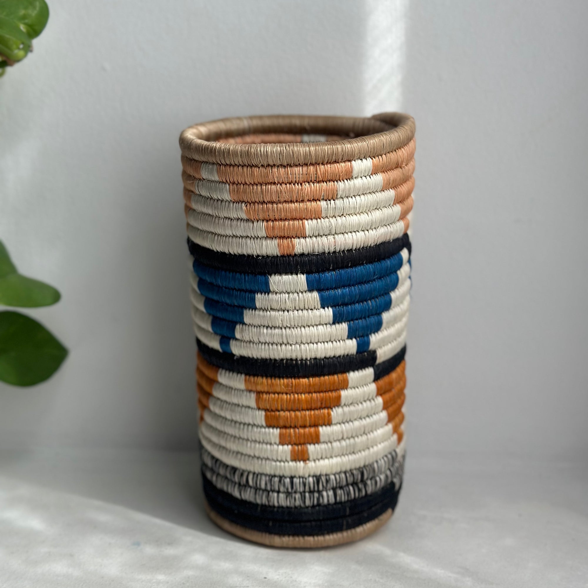 Beautiful woven vases made from sisal and grass! Adds a functional pop of color in your kitchen, or hang on your wall as an accent piece for any room!