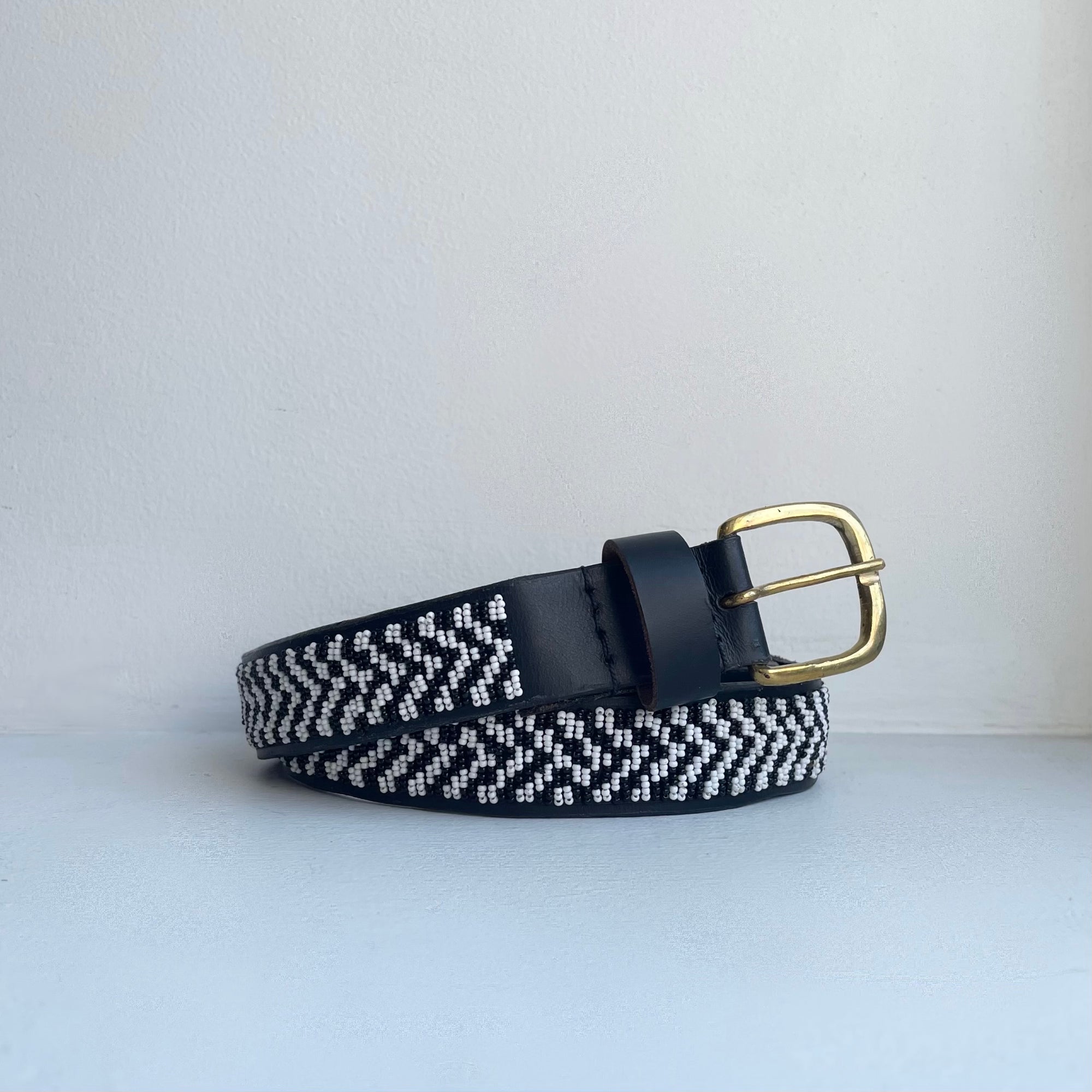 Beautifully hand-beaded by a Maasai women's collective in Kenya. Made with Kenyan leather, glass beads and a brass buckle.